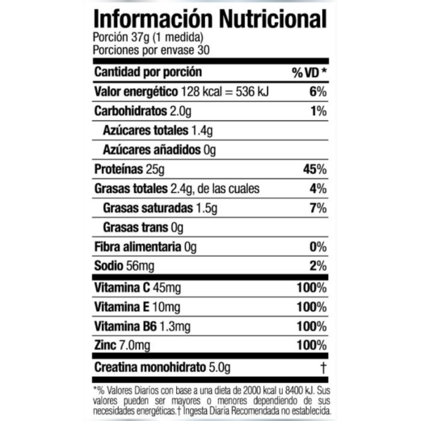 Turbo Whey es un suplemento proteico que combina un tri-blend de proteínas con creatina monohidrato y un complejo de vitaminas y zinc. La fórmula entrega 25g de proteína pura, 5g de creatina y 6g de BCAA por porción. El producto está pensado para consumir antes o después del entrenamiento. Sabor Super Chocolate Ice Cream